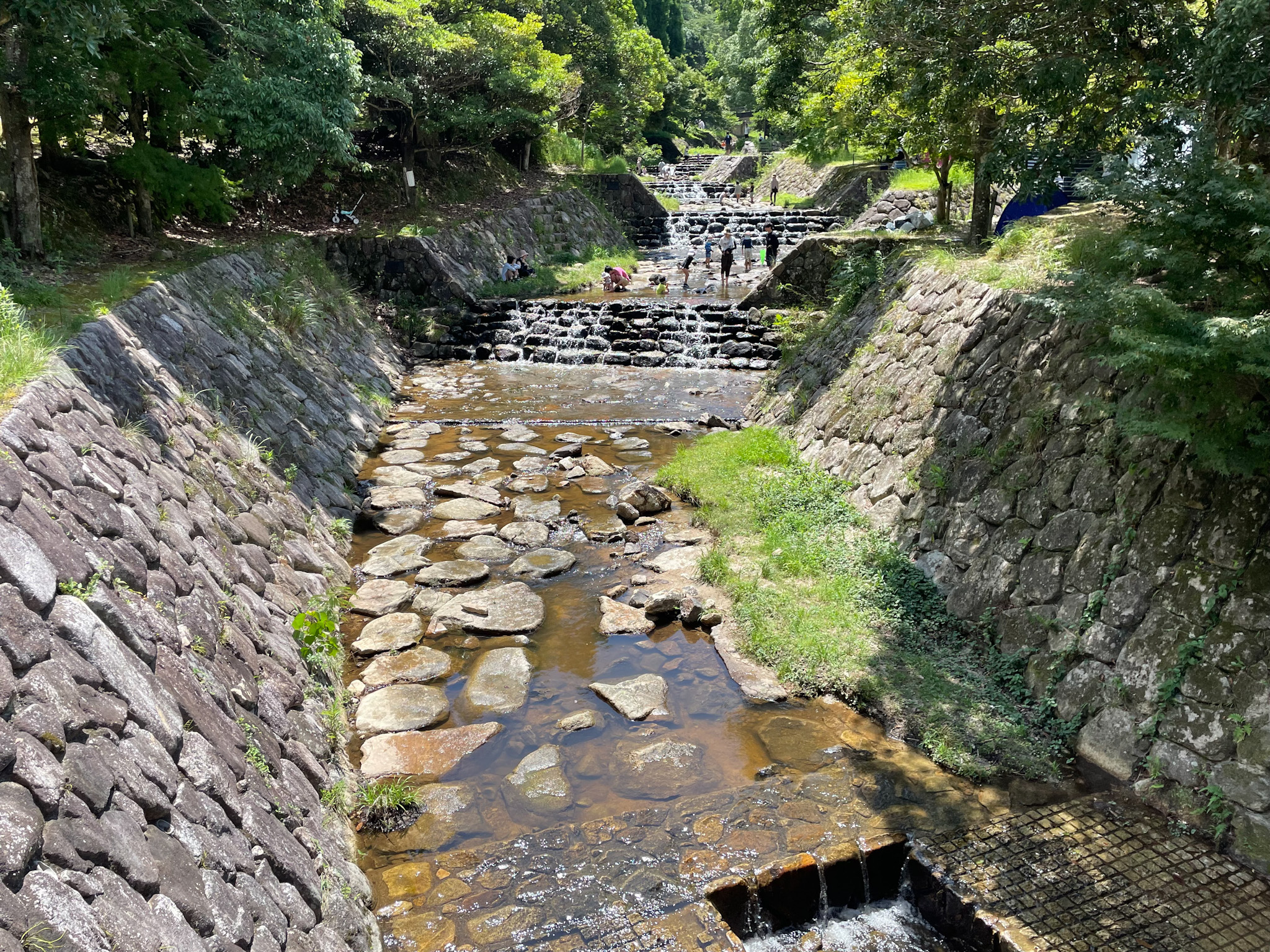 更衣も川に入るのも気楽にできる、夏休みのお出かけに今宿の人工の整備された川に出かけてみませんか?