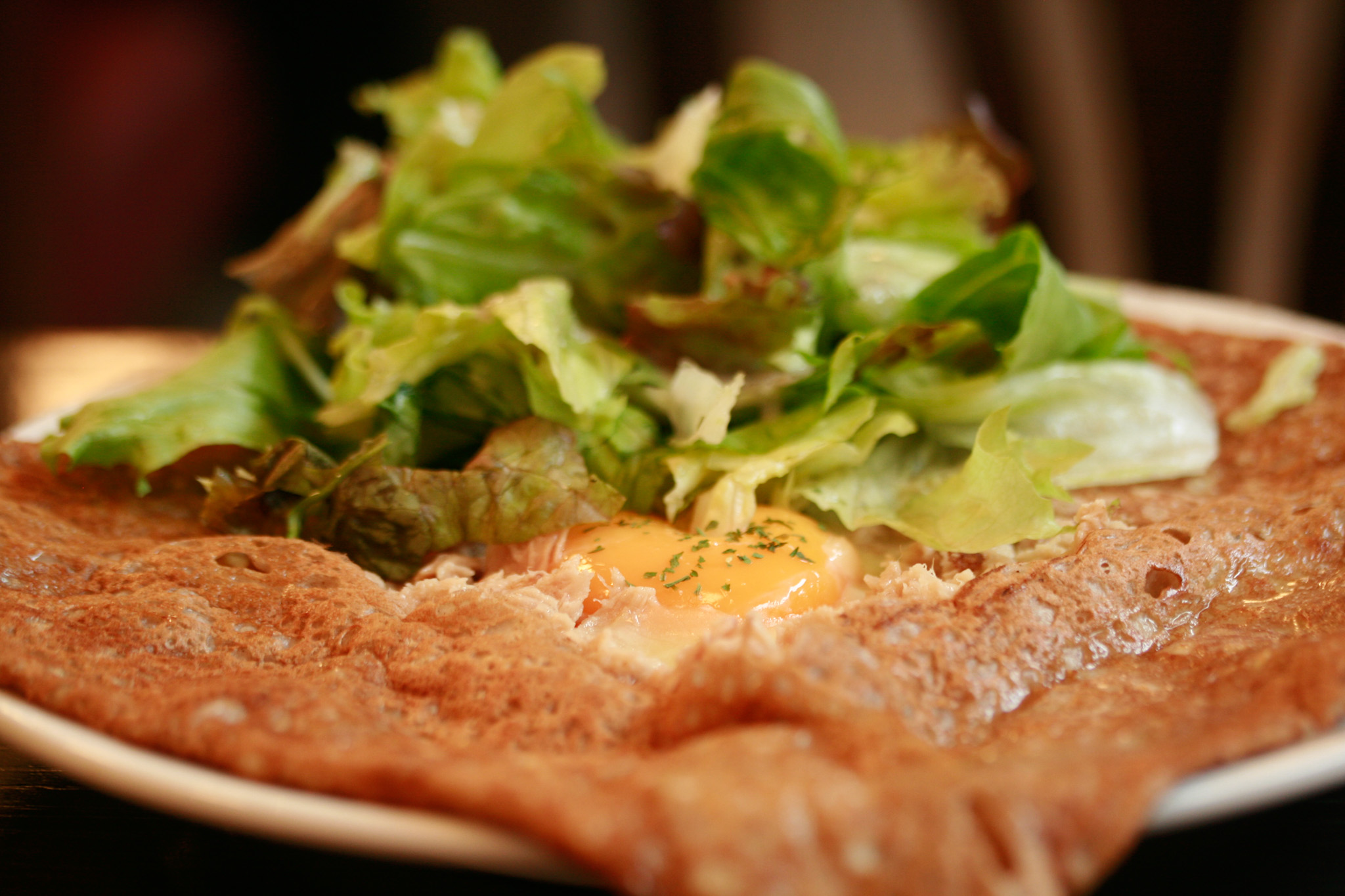 タマゴの火加減もほどよくて、ツナと合わせて生地と合わせて食べると食べやすいガレットです。タマゴの味を濃厚に感じられたので、タマゴにもこだわりがあるのでしょうか?