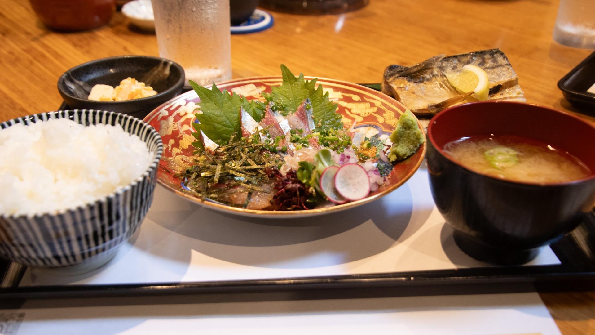 お味噌汁や小鉢も丁寧に作られていて、一つひとつに手仕事の温かみを感じます。観光で訪れた人はもちろん、地元の方でもわざわざ通いたくなるクオリティでした。