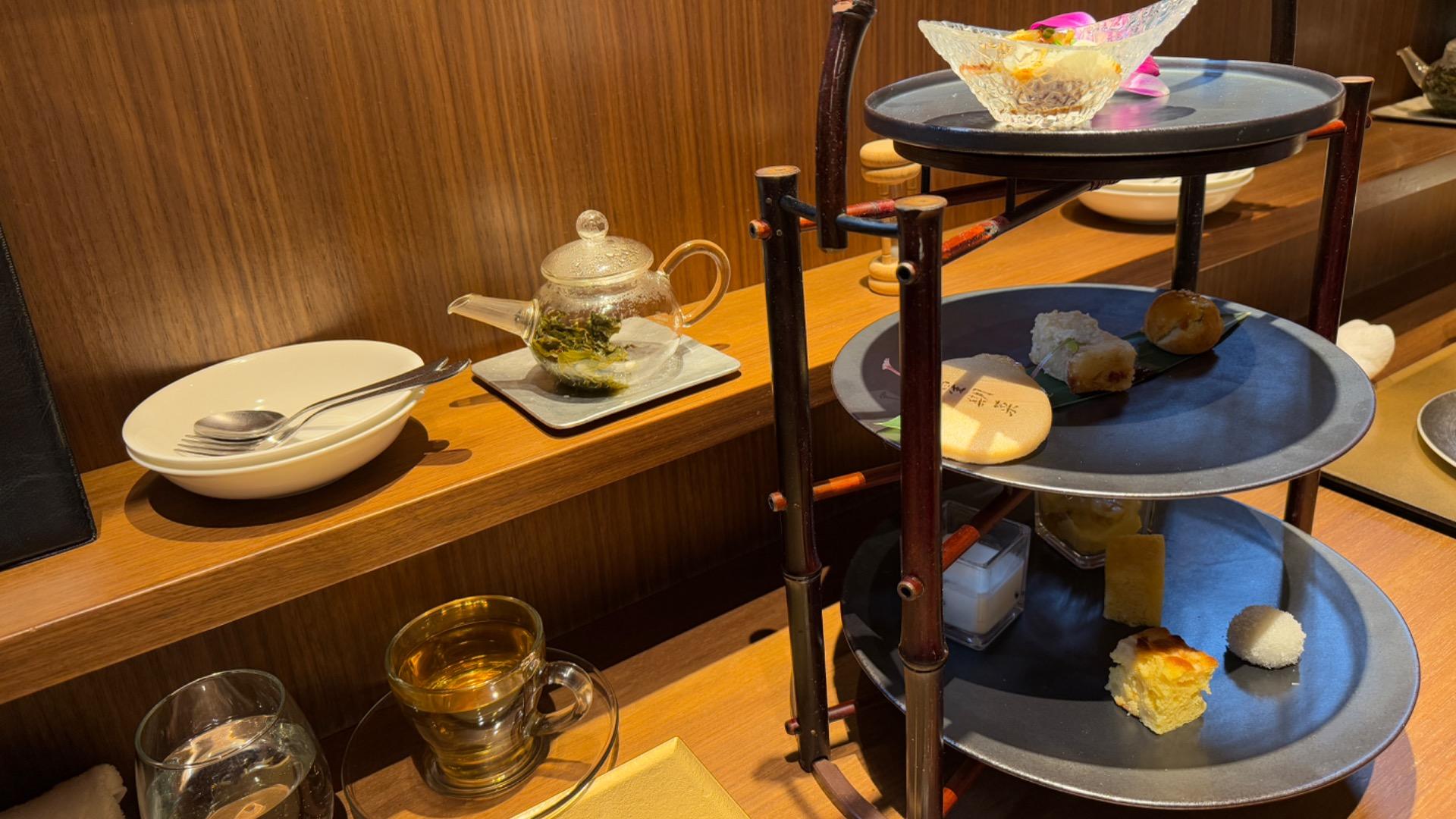 その後に、ティースタンドで焼揚点心からデザートまでが運ばれてきました。