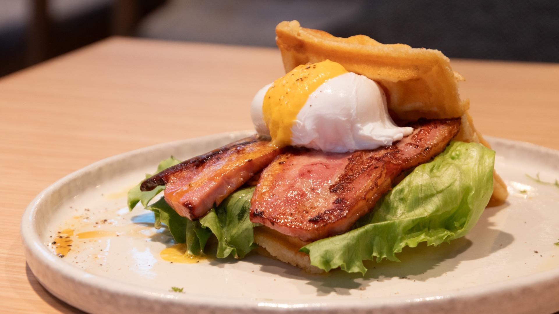 今回は、米粉のワッフルサンドの中でも厚切りベーコンを紹介。
