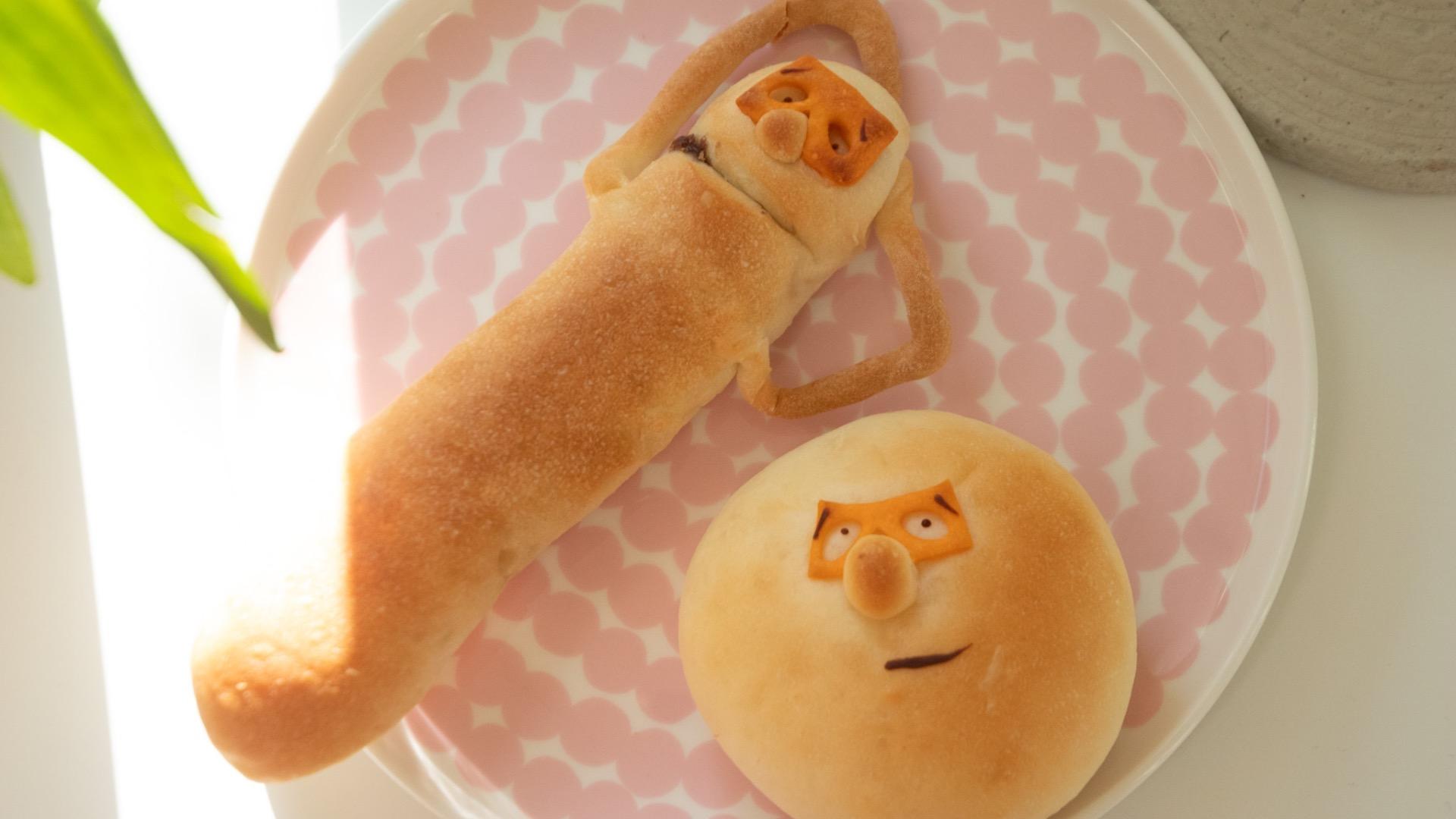 2種のパンで味わう、かわいい表情をした博多のぱん