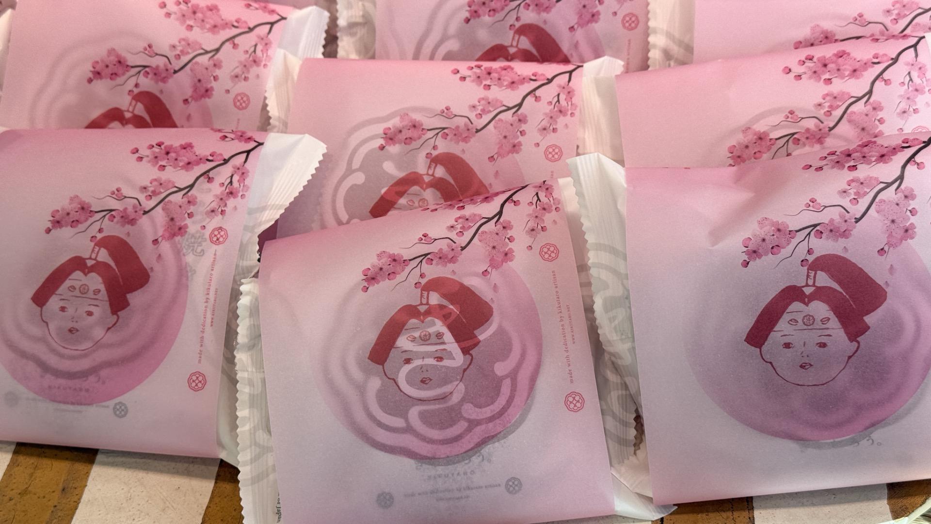 優しい桃色の、桜の下で食べたくなりそうな包装。