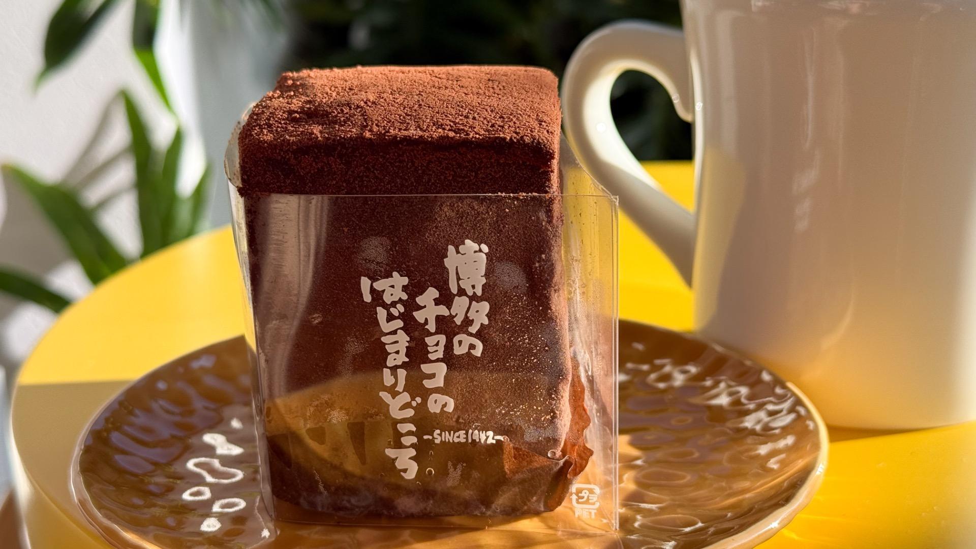 スポンジケーキの中で、本店・博多駅にあるチョコレートショップ博多の石畳店。そして、山王店で販売されている看板商品の『博多の石畳』は特におすすめ。