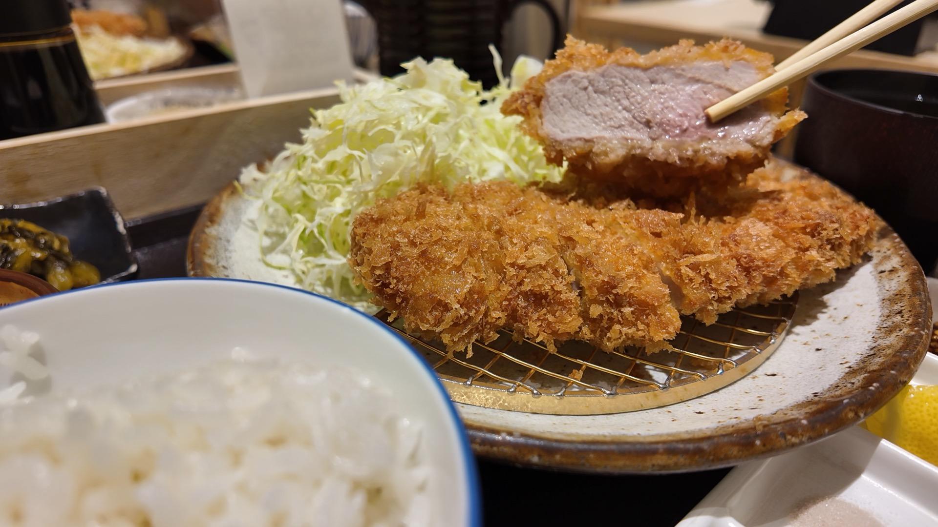2種類のとんかつを一度に楽しめる贅沢感と、丁寧に作られたごはんや味噌汁のバランスが心地よく、フードコートであることを忘れてしまうほどの満足感があった。