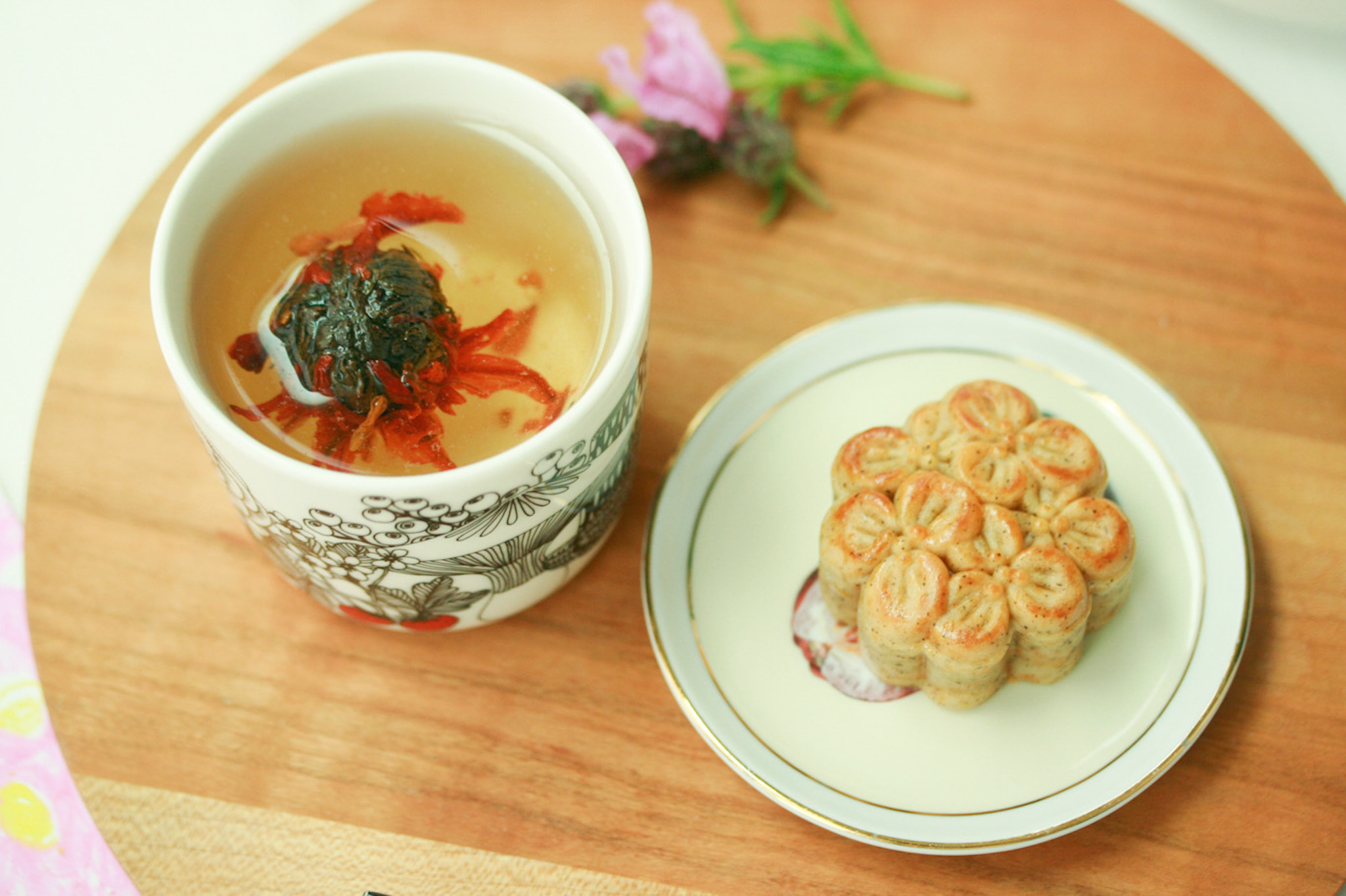 桂花紅茶月餅と工芸茶を買ってティータイム