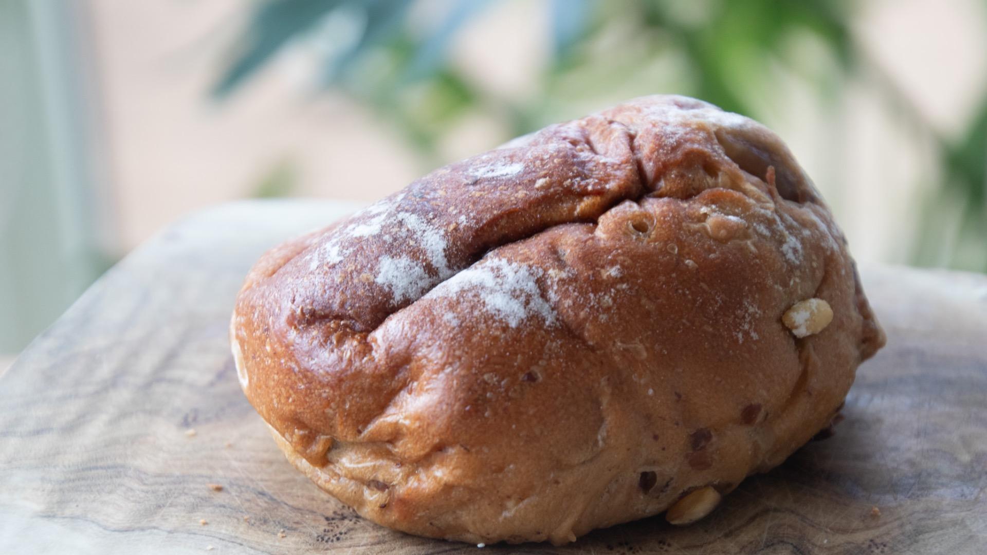 コロンと丸い生地の間から、マカダミアや栗の不規則な形の出っ張りに“美味しそう”と食べる前からワクワクするパン。