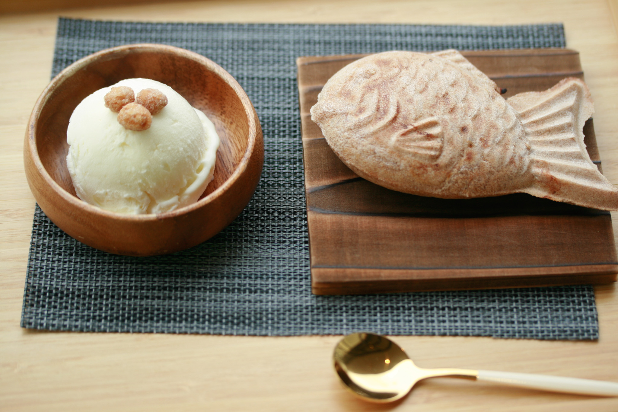 しかも、たい餅とアイスクリーム(バニラ)は別の皿。